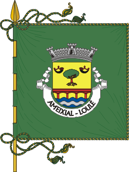 Armas – Escudo de ouro, sobreiro arrancado, de sua cor, encimando uma ponte de três arcos de vermelho, firmada nos flancos e movente de um pé ondado de azul e prata de três tiras; nos cantões do chefe, duas buzinas de negro, com bocais, virola e cordões de vermelho, postas em cortesia. Coroa mural de prata de três torres. Listel branco com a legenda a negro, em maiúsculas: AMEIXIAL – LOULÉ.